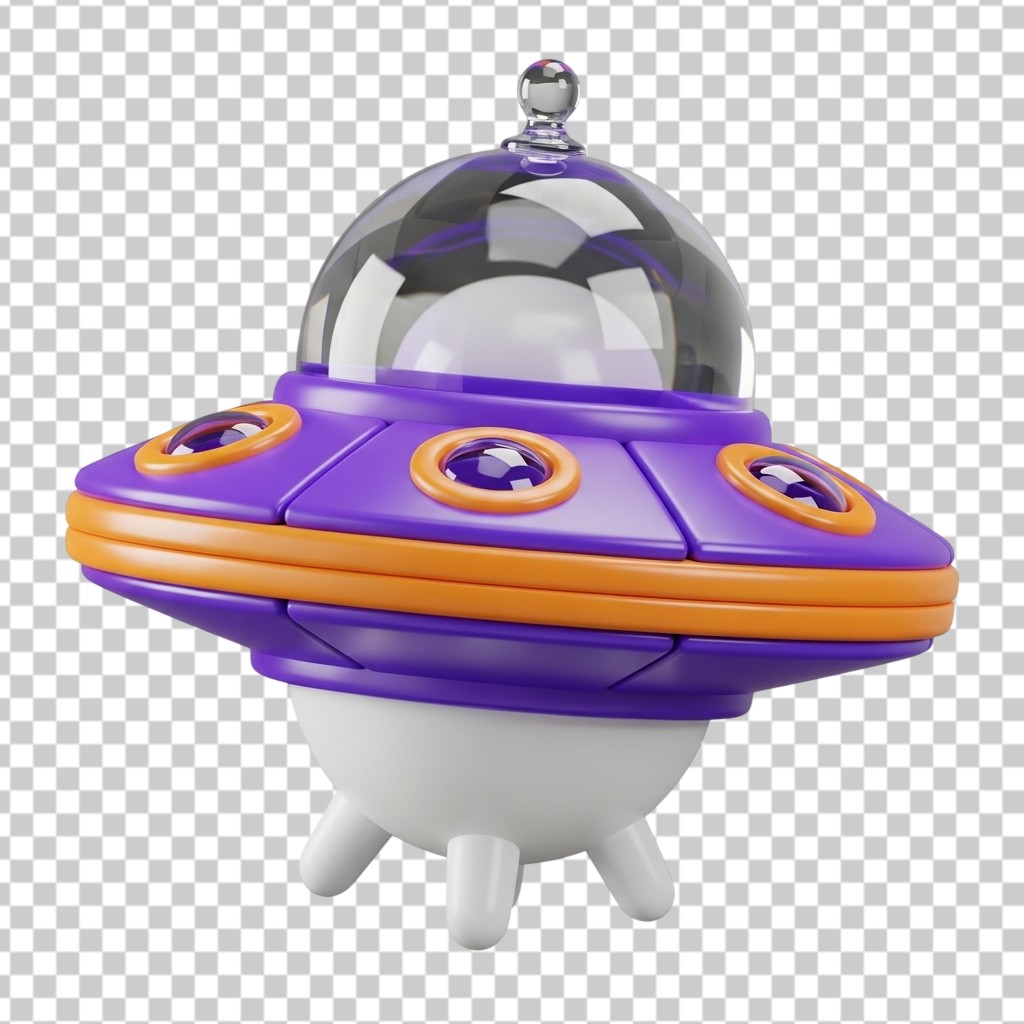 3D Purple and Orange UFO Spaceship Alien Aircraft Element PNG Transparent Background