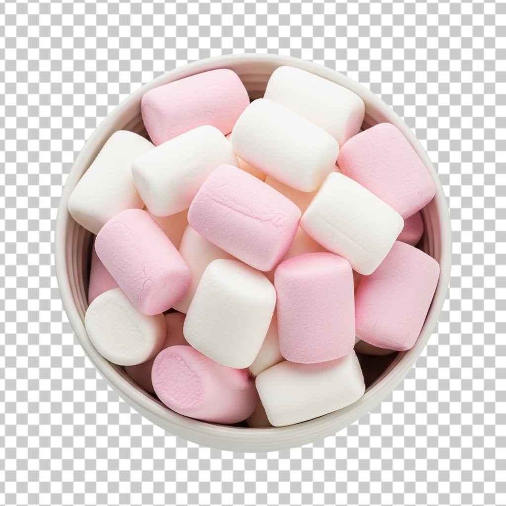 Bowl Filled with Soft Pink and White Marshmallow Candies PNG Transparent Background