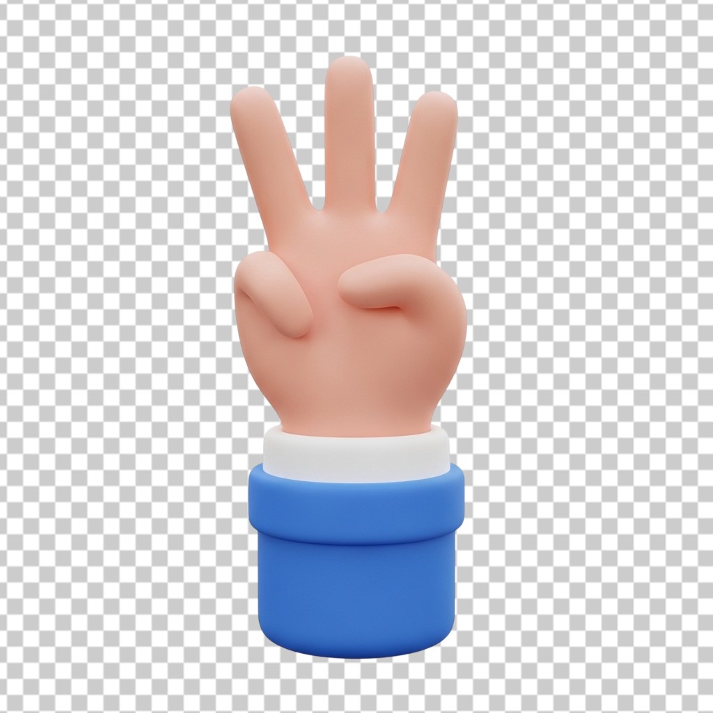 3D Cartoon Hand Showing Peace Sign Gesture PNG Transparent Background