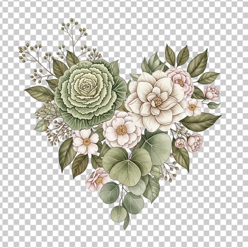 Heart Shaped Floral Arrangement with Roses PNG Transparent Background