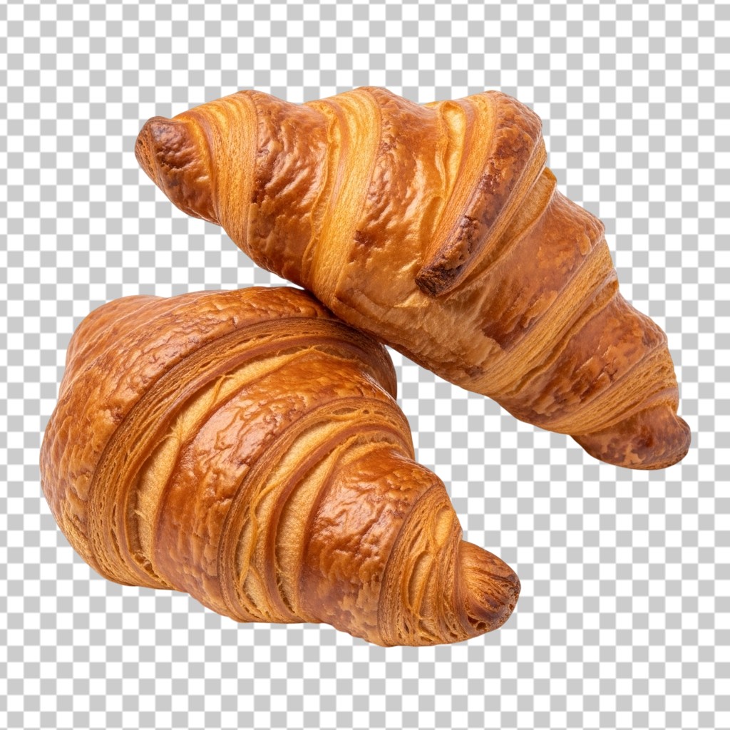 Two Freshly Baked Golden Flaky Butter Croissants Bakery PNG Transparent Background