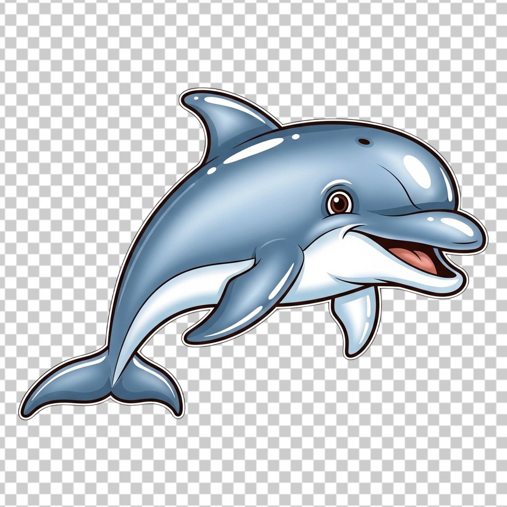 Cute Blue Cartoon Dolphin Character PNG Transparent Background