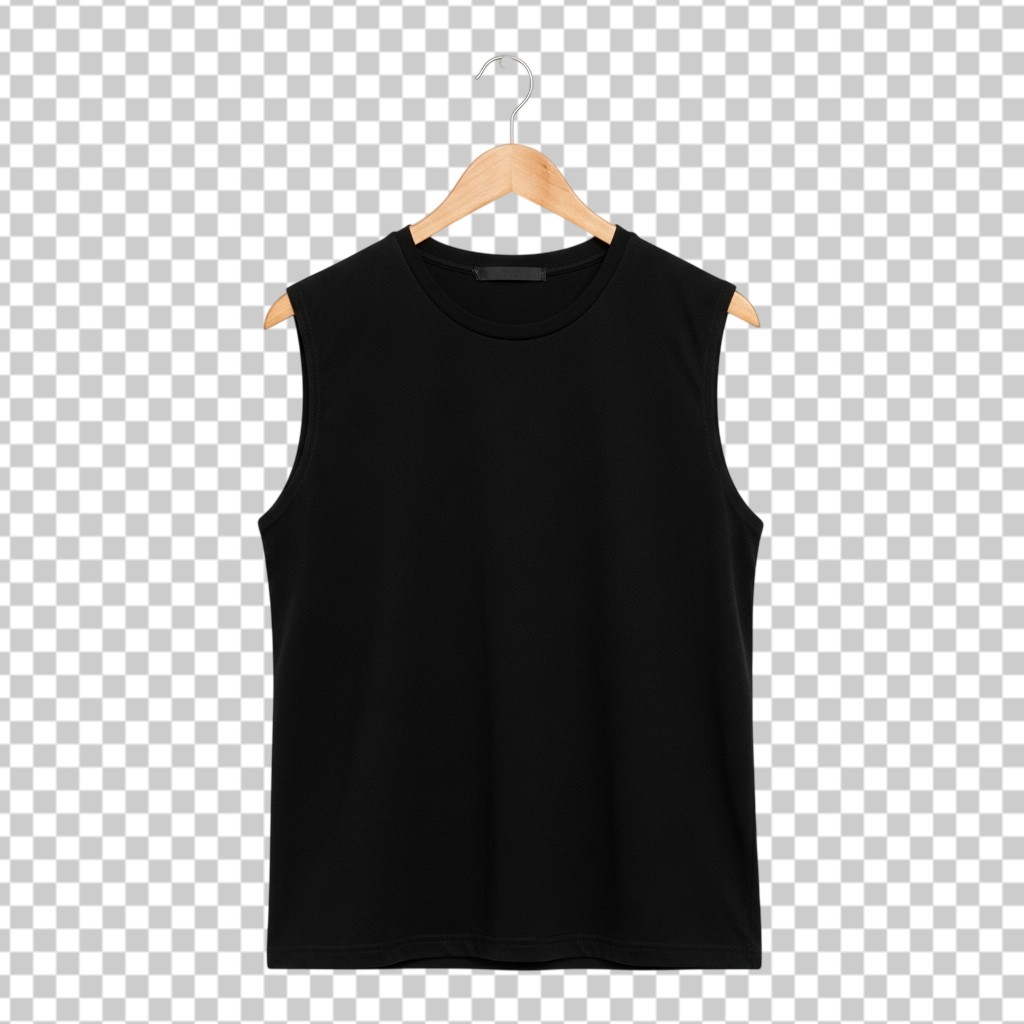 Black Sleeveless Tank Top Mockup on Hanger PNG Transparent Background