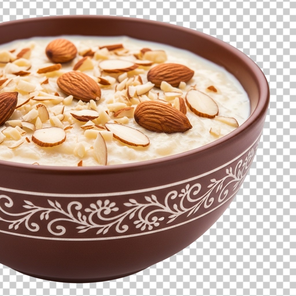 Healthy Porridge Bowl with Almonds and Banana PNG Transparent Background