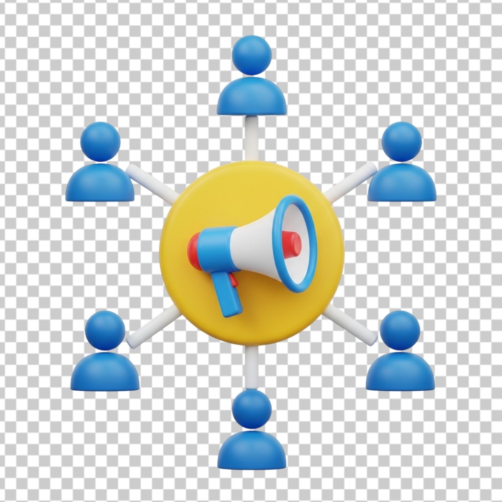 3D Marketing Network with Megaphone and People Icons PNG Transparent Background