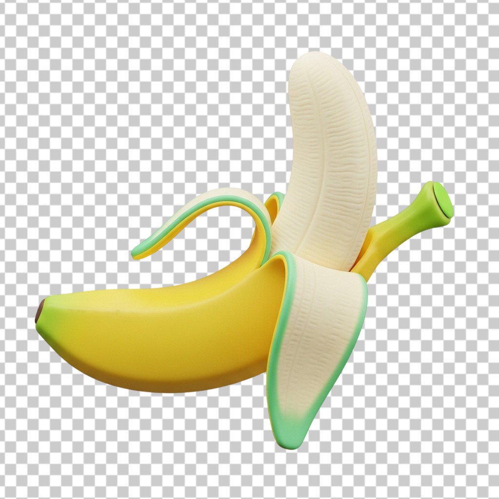 3D Realistic Half Peeled Yellow Banana Fruit Illustration PNG Transparent Background