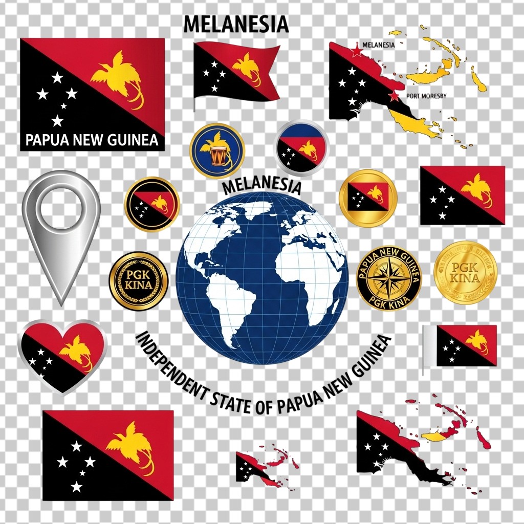 Papua New Guinea Map and Flag Icons Collection PNG Transparent Background