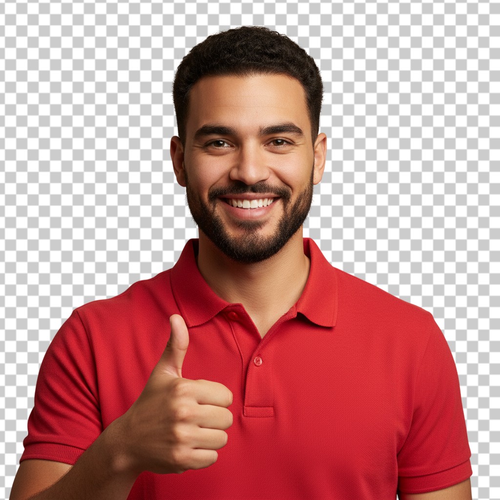 Smiling man in red polo shirt giving thumbs up PNG Transparent Background,People