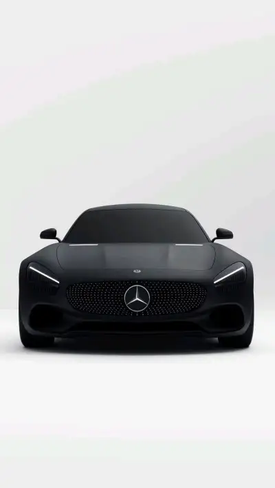 the front view of a black mercedes sports car on a white background with no people around it