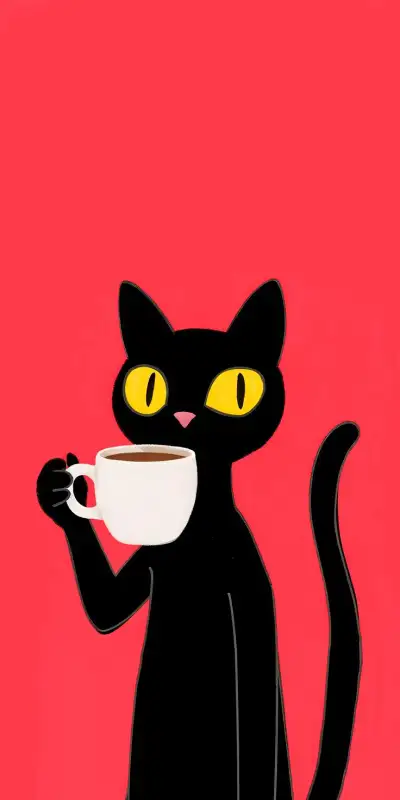a cat with big eyes holding a coffee cup