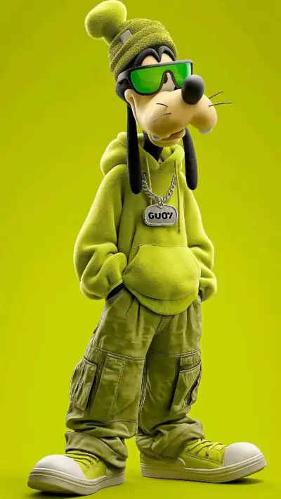 a cartoon character wearing headphones and green shirt with ear phones in front of a green background
