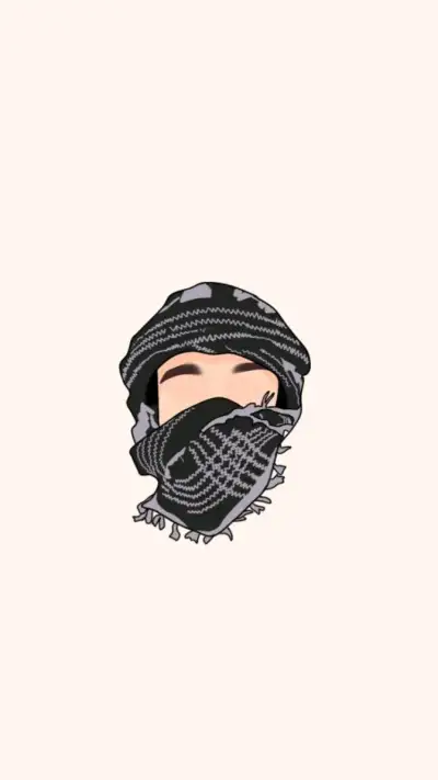 a drawing of a person wearing a scarf and bandana, with the caption that reads