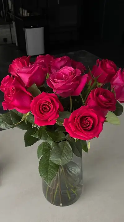 a vase filled with red roses on top of a table
