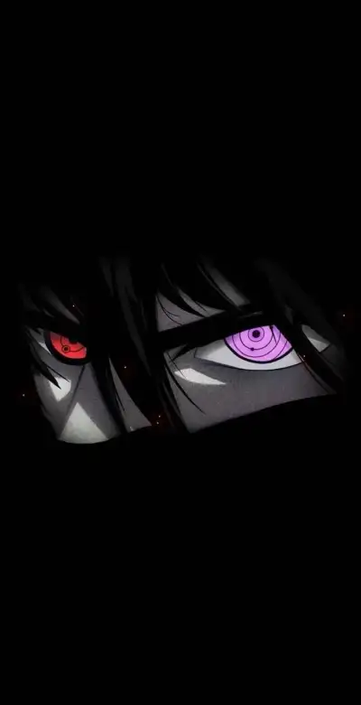 an anime character with red eyes in the dark