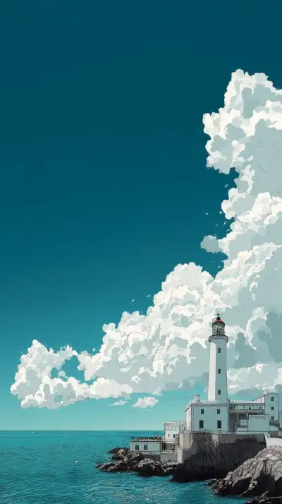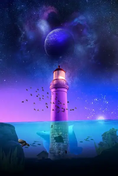 a painting of a lighthouse in the ocean