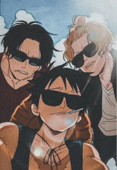 one piece standing on top of a boat with a pirate flag in the air next to another man