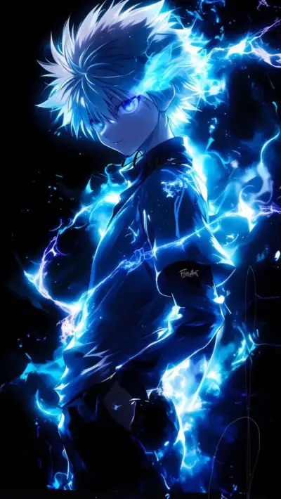 an anime character is standing in front of a blue fire and ice monster with his mouth open