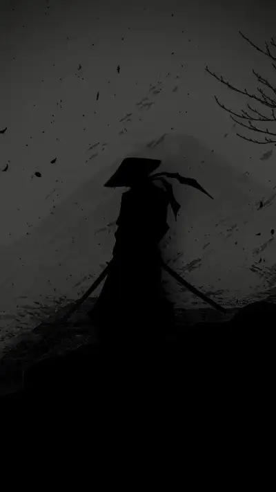 a man with two swords in his hand standing in the fog wearing a black outfit