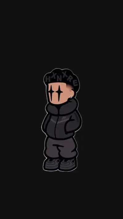 a drawing of a person wearing a black hoodie and ripped jeans, standing in front of a red background