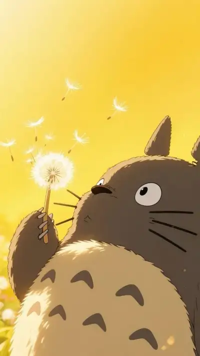 a cartoon cat holding a dandelion in its paws and looking up at the sky