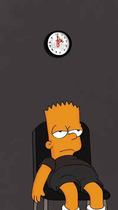 a cartoon character sitting in a chair with a clock on the wall above him,