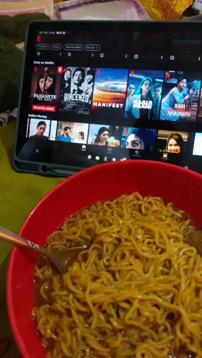 a bowl filled with noodles and vegetables on top of a table next to chopsticks