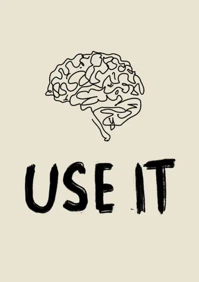 the word use it written in black ink with a drawing of a brain on top
