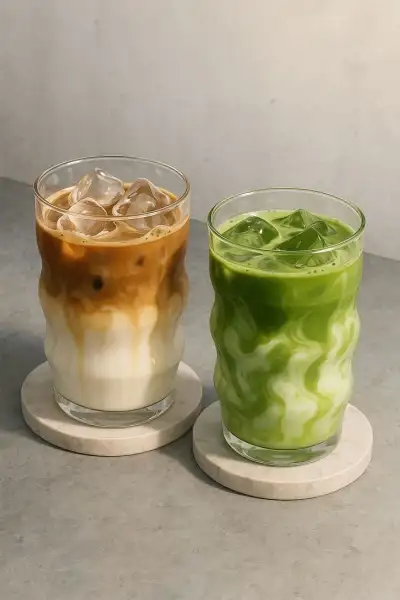 two cups filled with liquid sitting on top of each other