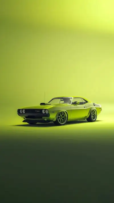 an orange sports car parked in front of the word dodge on an orange background with white lettering