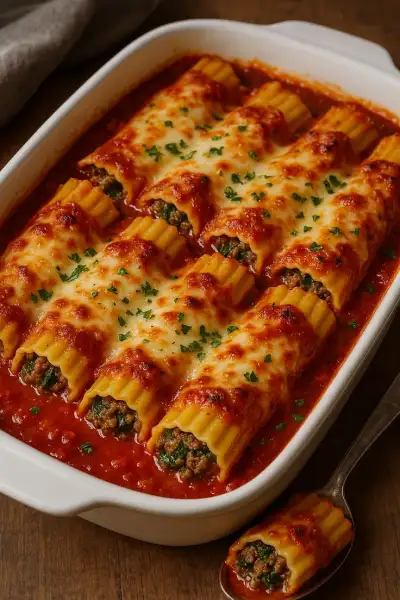 recette simple et savoureuse de manicotti farcis à la viande hachée et aux épinards Ingrédients