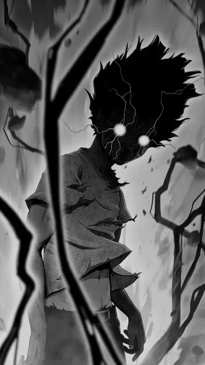 black and white photo of anime characters with moon in background