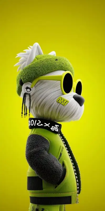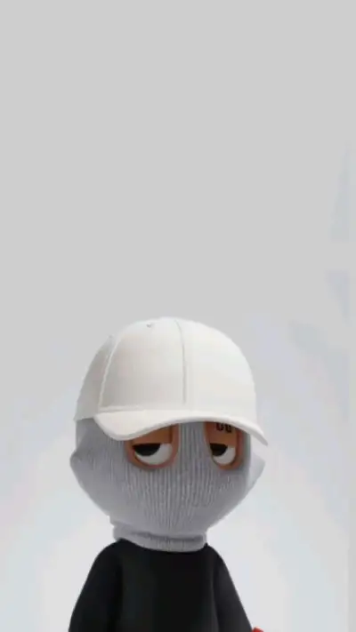 the character is wearing a green hat and scarf with black eyeliners on his head