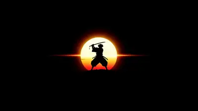 Samurai, Silhouette, Minimalist, AMOLED, Black background, 5K