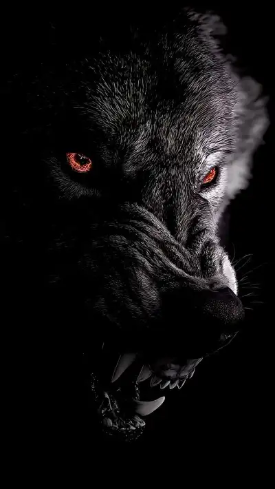 a painting of a black dog and a rat on a red background, both with their mouths open