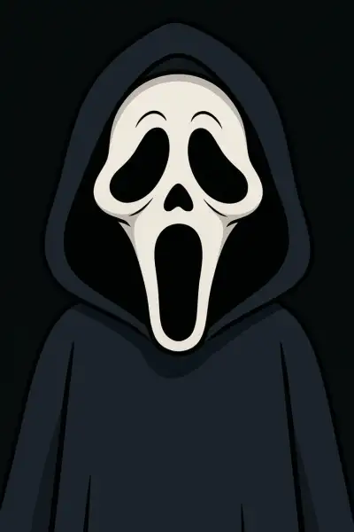 a drawing of a person wearing a black hoodie and ripped jeans, standing in front of a red background