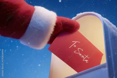 Santa mailing a Christmas letter on a snowy night