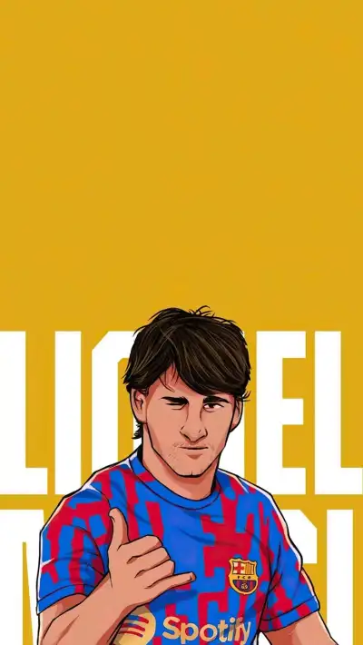 a man in a blue and red shirt with his hand on his chest while standing next to a yellow wall