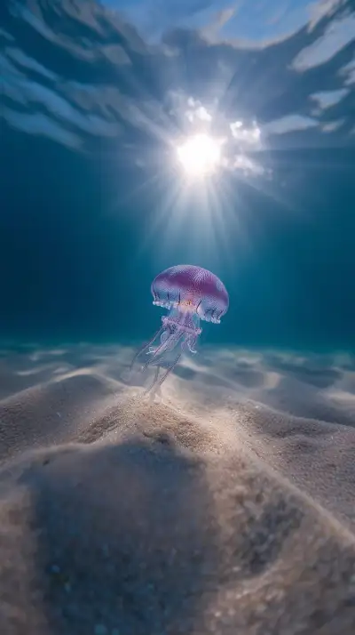 a jellyfish swimming in the ocean under water