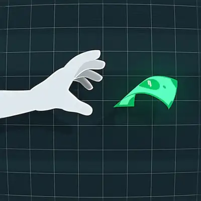 a cartoon character wearing headphones and green shirt with ear phones in front of a green background