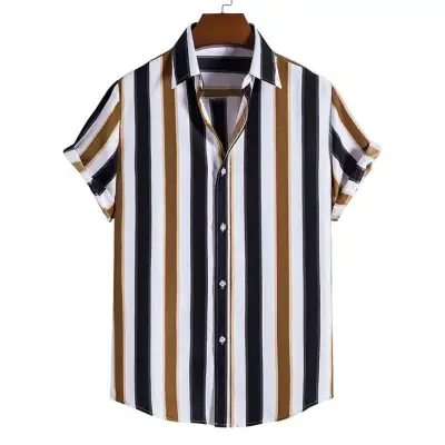 Men's Hawaiian Shirt Summer Stripe Printed Short Sleeved Shirts Lapel Button Large Men Street
