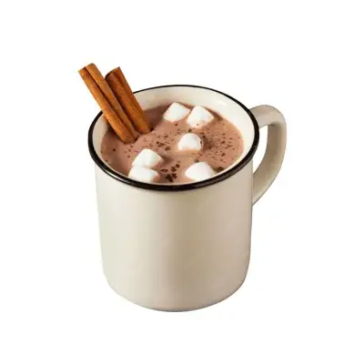 A cup of hot chocolate with cinnamon sticks on a white background | Premium Photo