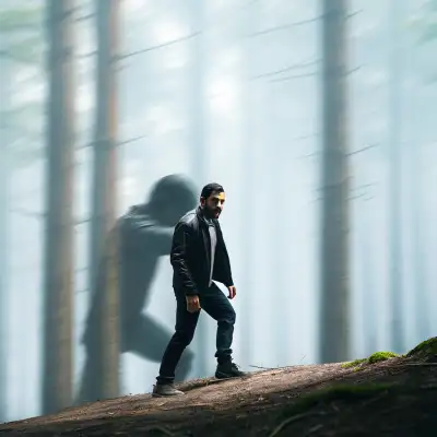 two young men standing next to each other in the woods