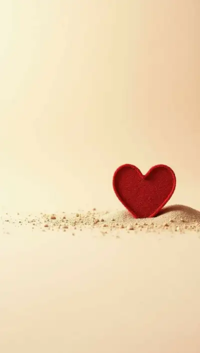 a red heart sitting on top of a pile of sand