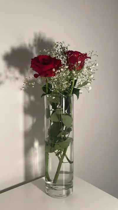 a vase filled with red roses on top of a table