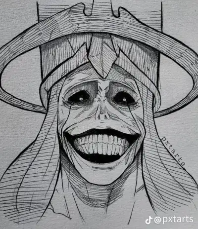a drawing of a person wearing a hat