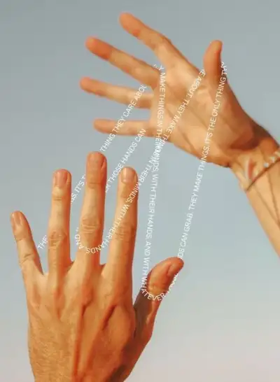 two hands reaching up towards each other with words written on them to spell out the word love
