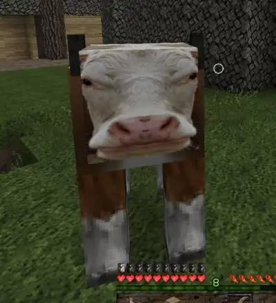 an anime character holding his head in front of the camera, with grass and trees in the background