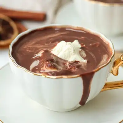 a white cup filled with chocolate and whipped cream