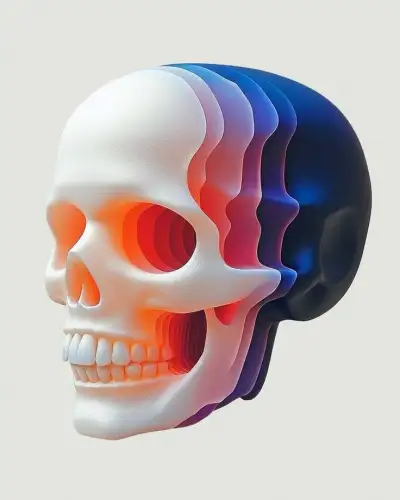 a skull wearing headphones with a purple background