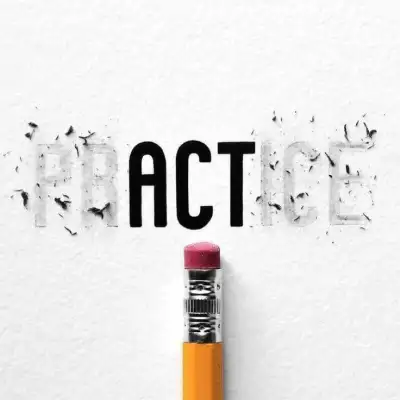 the word practice is written in black and white with a pencil sticking out of it